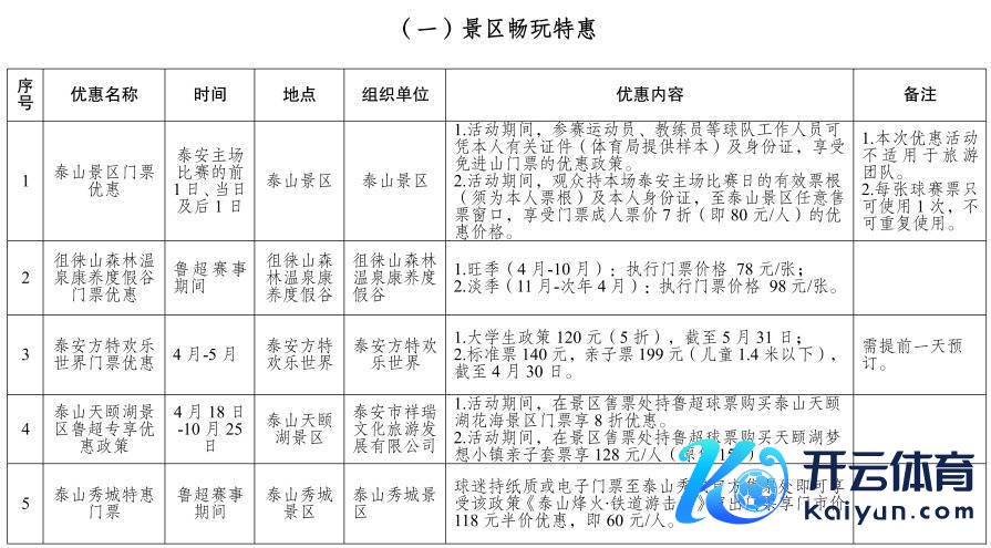2.举止时代,不雅众握本场泰安主场比赛日的灵验票根(须为本东谈主票根)及本东谈主身份证,至泰山景区纵脱售票窗口,享受门票成东谈主票价7折(即80元/东谈主)的优惠价钱。