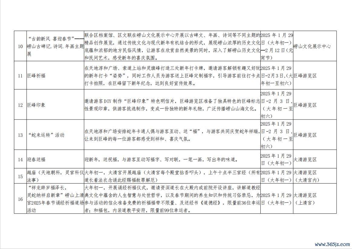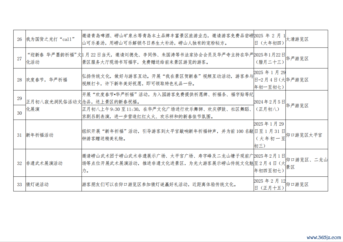春节时辰,景区将推出传统民风、非遗手创、送福祈愿、猜谜互动、体验打卡、文化展览和赏冰不雅雪等7大类、近40项性格看成,打造“非遗迎春、乐游崂山”的文旅新场景,为旅客带来特有的新春文化体验。