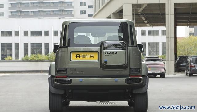 与祯祥星河5、长安深蓝S05所不同,奇瑞 iCAR V23接管了方盒子格式的造型,前脸部分,新车将前护杠移至轮胎上方,圆形的大灯组嵌入其中,搭配硬朗的引擎盖(塑料材质),看起来很有硬派气味,在前杠下方还有着与车身同色的护板,两侧的毫米波雷达接管透明盖打算,颇具科技感。