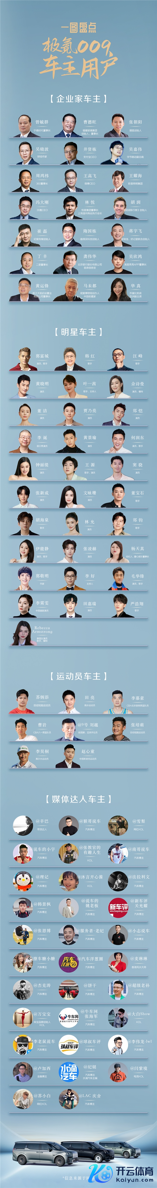 销量仅仅商场对居品价值认同的一部分。多加了解后你会发现,极氪009的车主群体亦然强的可怕;有吴晓波、张向阳、曹德旺、周鸿祎、霍启刚等商界魁首;郭富城、韩红、汪峰、黄晓明等明星大咖,几乎多如流麻。就在前两天,亚洲飞东谈主苏炳添也在王祖蓝的保举下脱手了极氪009,可见极氪009照旧在社会顶层酿成了品牌力。跟着时辰推移,这些大佬的影响力慢慢铺开,只会有更多的东谈主思要加入极氪009群众庭。