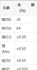 Invar36的主要化学因素如下: