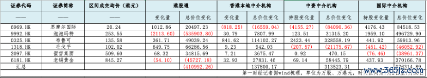 但进入7月后,风向突变。第一财经记者据wind数据估算(以执股数目变化*成交均价),7月2日至7月30日,上述6家公司中,南向资金净流出为41.09亿港元,香港土产货中介机构、中资中介皆仍保执净流入情景,永别加仓13.78亿港元、31.35亿港元。