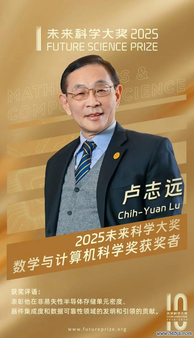 "数学与计较机科学奖"授予卢志远,奖赏他在非易失性半导体存储单位密度、器件集成度和数据可靠性限制的发明和引颈的孝顺。