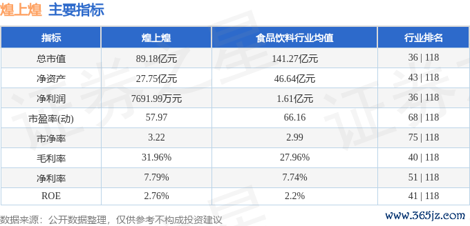 该股主要商酌及行业内排行如下: