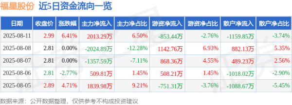 近5日资金流向一览见下表: