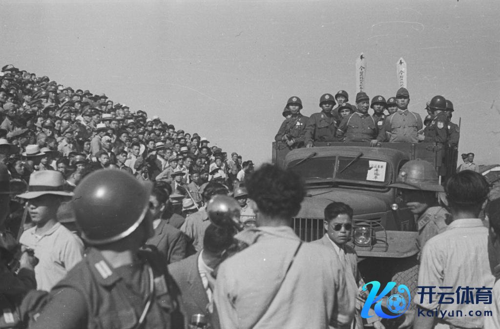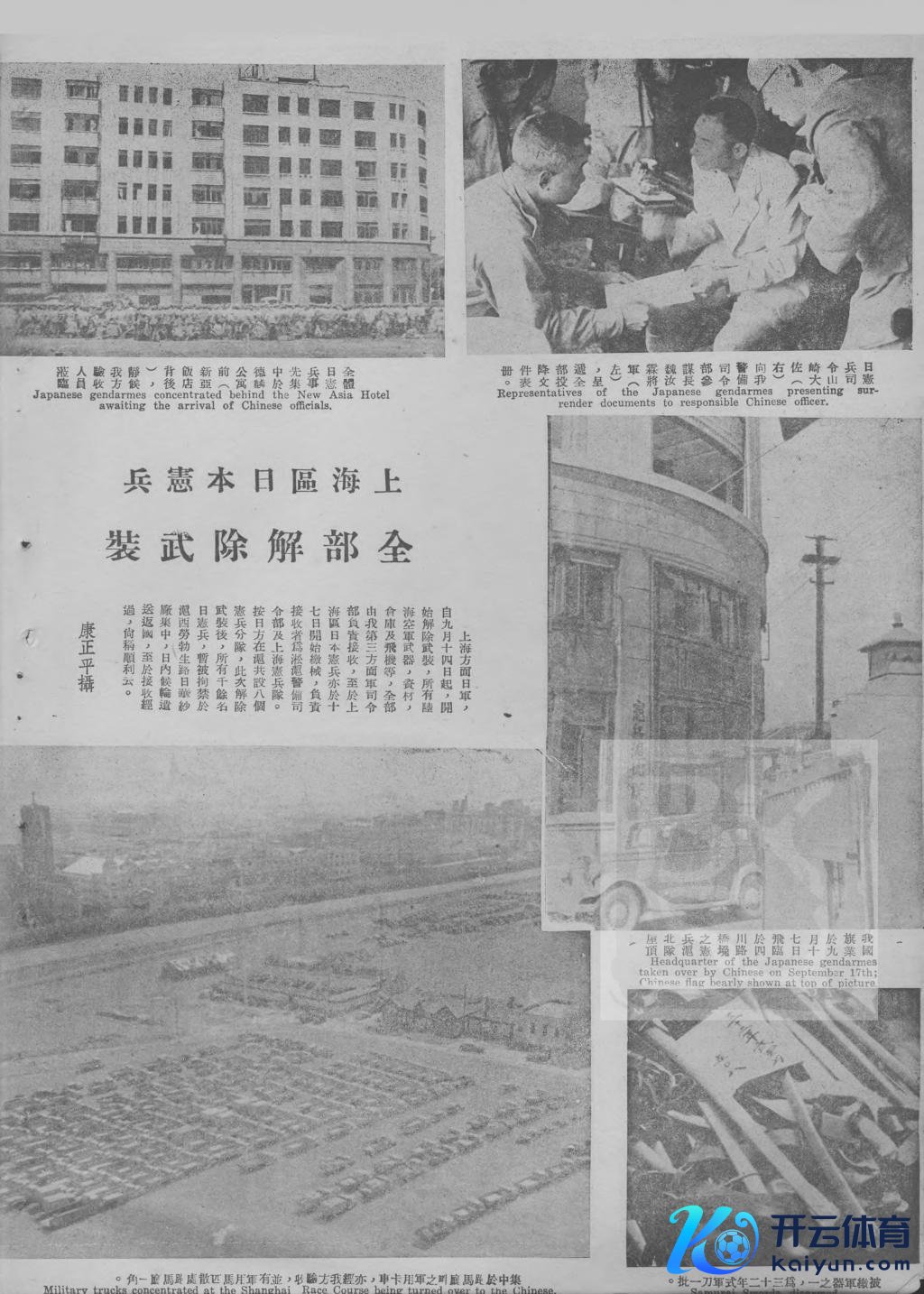 抗战获胜后,上海区日本宪兵沿路吊销武装。康正平 摄,畴前报纸档案截图,图片源头:上海藏书楼