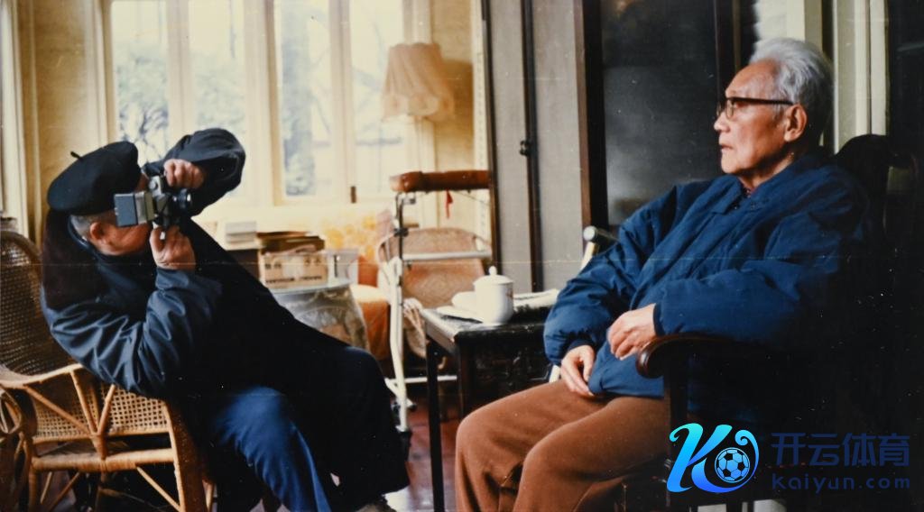 康正平在给巴金拍摄相片。图片源头:虹口区档案馆
