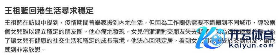 在上海生计七年间,王祖蓝的两个男儿Gabby和Hayley在外洋学校收受正常话教授,家里的菲佣也只讲英语。 成果孩子们回到家,只可用磕磕巴巴的正常话说“妈咪,我肚饿,要饮奶奶”,连一首浅近的粤语童谣合唱不齐全。 李亚男为此紧张得直掉眼泪,她反复对王祖蓝强调:“咱们是香港东说念主,孩子弗成连家乡话齐不会讲啊! ”