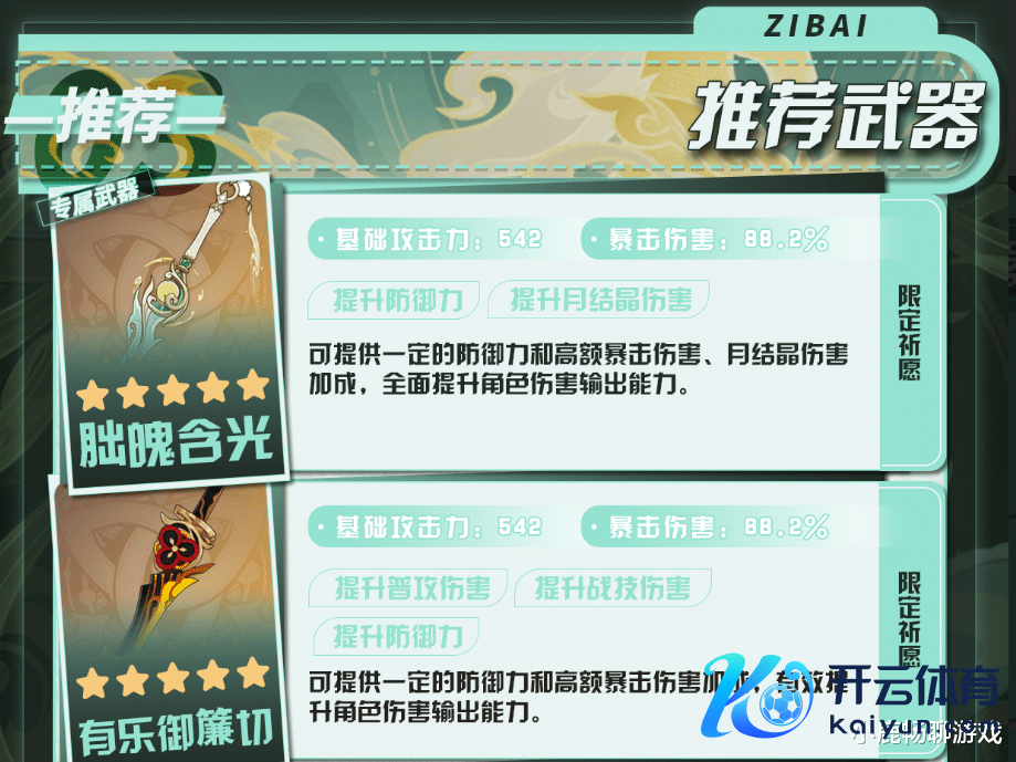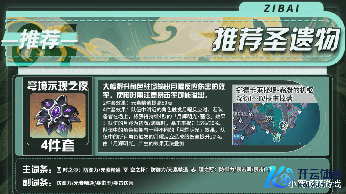 用专武或有乐御帘切:火器自己依然提供了高额暴伤,圣遗物要点堆暴击率,最佳搭配 “穹境示现之夜” 套装,进一步普及月结晶伤害。