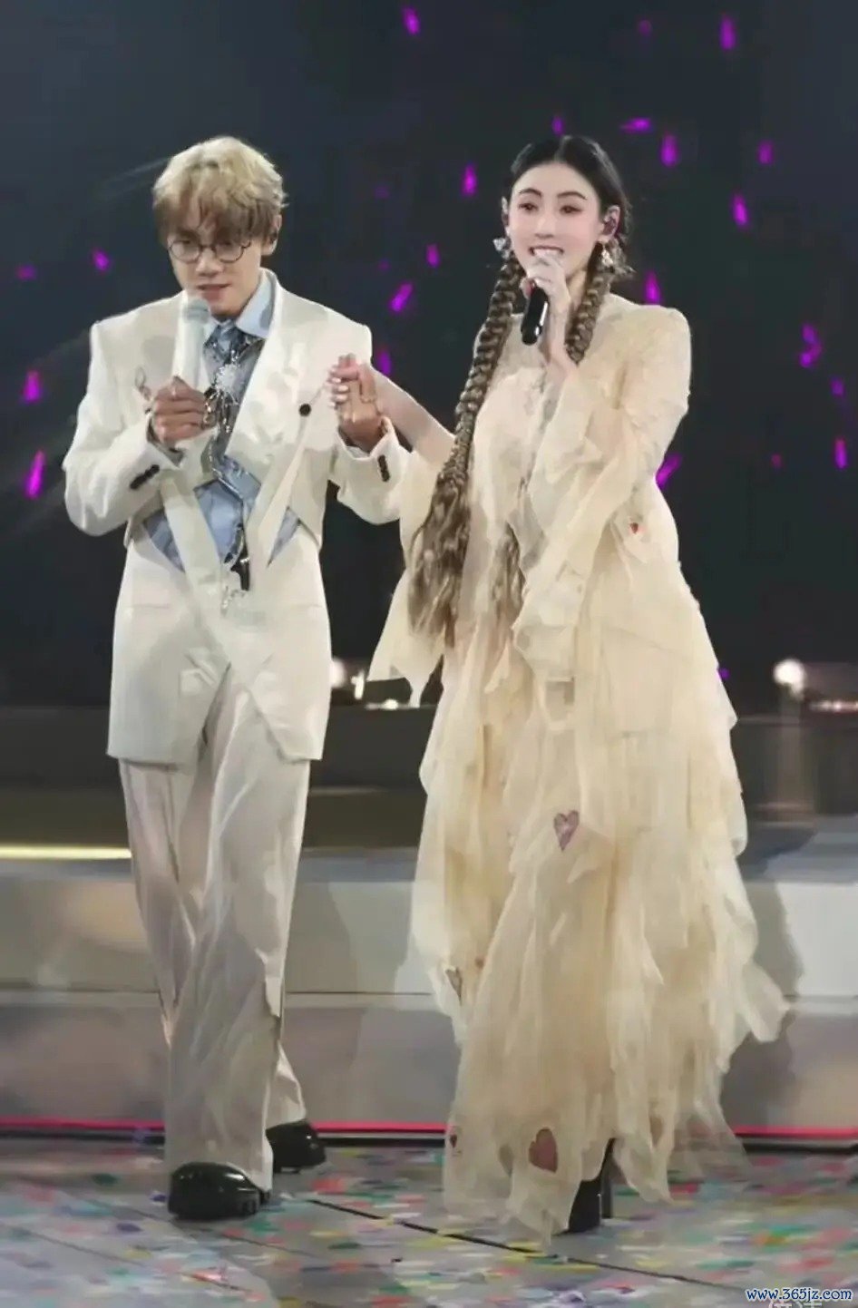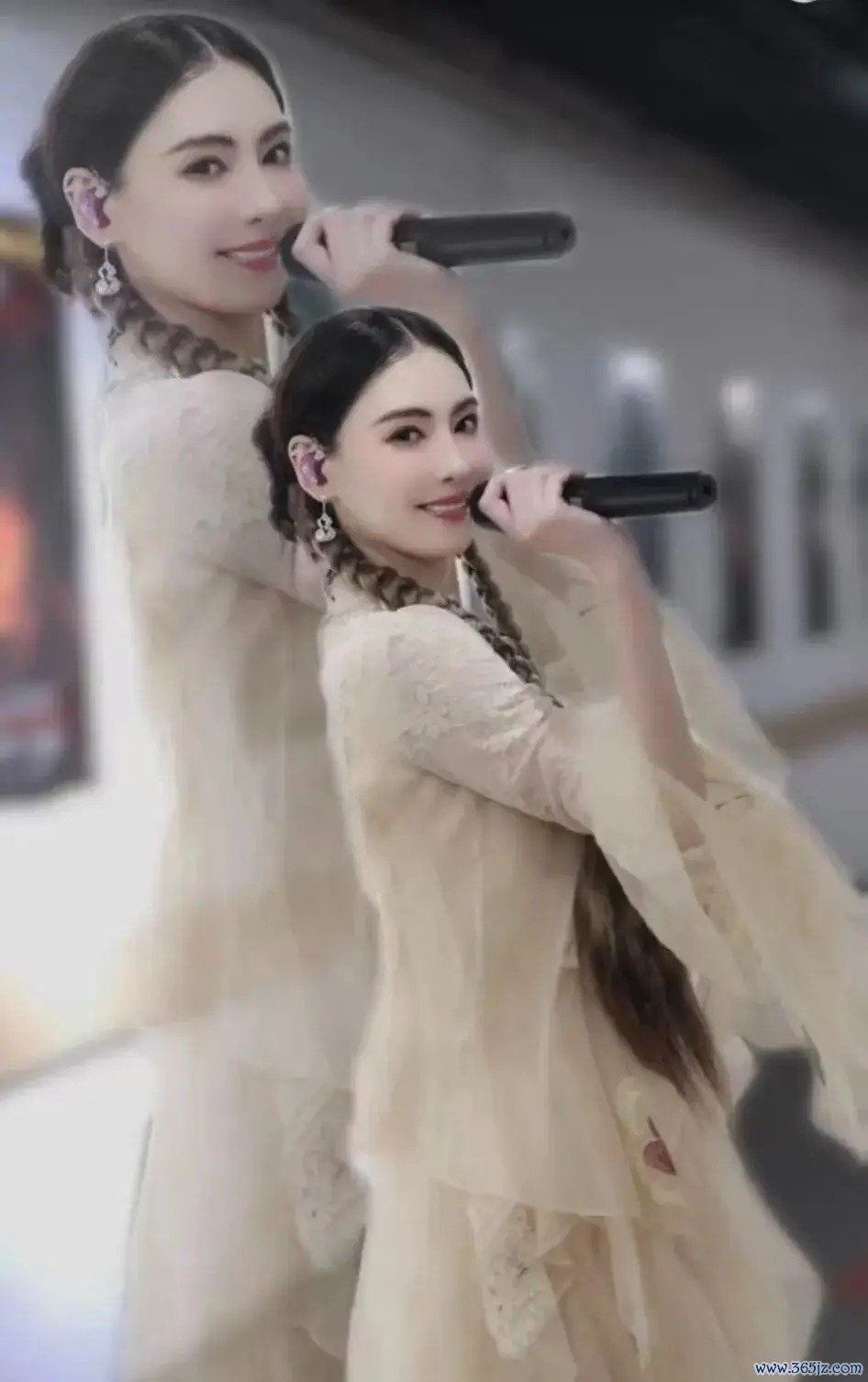 昨天,张柏芝现身好友林家谦的演唱会当嘉宾。视频中,她身着一袭黄色长裙,扎着麻花辫,与林家谦牵手齐唱。