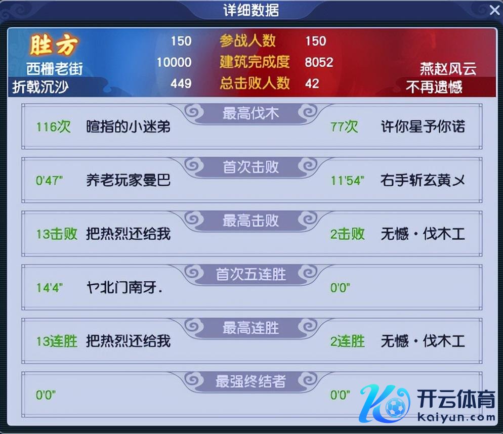 况且,从最终的战果来看。【折戟千里沙】不仅在建筑完成度上大幅度特出【不再缺憾】,在总打败东说念主数上也收场了全面碾压。