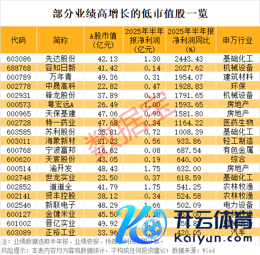 部分事迹高增长的低市值股出炉部分事迹高增长的低市值股出炉