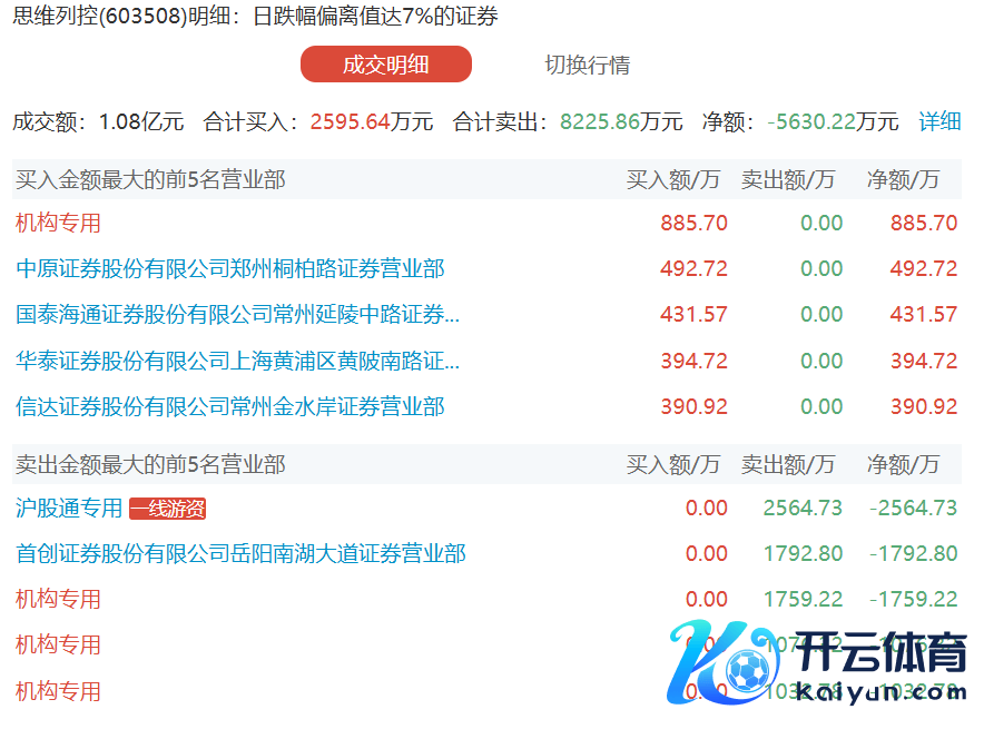 想维列控当天跌9.87%,有4家机构专用席位净卖出1.25亿元想维列控当天跌9.87%,有4家机构专用席位净卖出1.25亿元